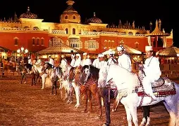 Experience the show in beautifully decorated Berber tents within an authentic kasbah-style venue.