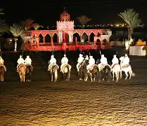 The evening begins with a warm welcome and traditional Moroccan hospitality. You'll be seated in beautifully decorated Berber tents where you'll enjoy an authentic Moroccan dinner. The spectacular show features skilled horsemen performing the traditional Fantasia (Tbourida), stunning acrobatic displays, mesmerizing belly dancers, folkloric music, and storytelling that brings Morocco's rich heritage to life.
